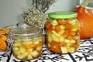 4 1/2 Pfund (2250 g) Kürbis in Würfel schneiden, in 1 ltr. Weiswein, 1 ltr. Wasser und 750 g Zucker bißfest kochen. Extra im Töpfchen ½ ltr. Wasser, 3 Nelken, 1 Stück Zimtrinde und 1 Zitrone aufkochen lassen ,durchseihen und zu den Kürbis im großen Topf geben. Abschmecken und in Gläser füllen.