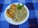 Eine klein geschnittene Zwiebel in etwas Butterschmalz anrösten, dann die gewaschenen, kleingeschnittenen Pilze (Steinpilze, Maronen, Birkenpilze oder Rotkappen) dazugeben und schön durchkochen lassen. Mit etwas Fleischbrühe aufgiesen und 10 Min. den Deckel auf den Topf. In der Zwischenzeit 2 Eßl. Mehl mit einem halben Becher Sahne abklöppeln und zu den Pilzen geben. Mit Salz und Pfeffer kräftig abschmecken und evtl. einen Spritzer Zitronensaft oder Essig dazugeben. Zum Schluß noch klein gehackte Petersilie dazu.