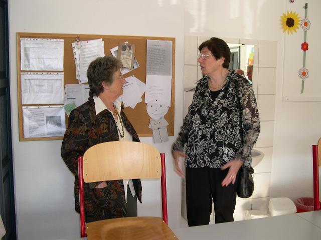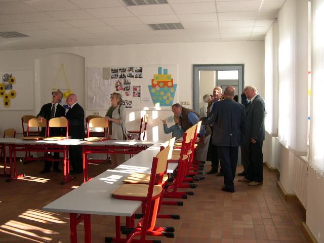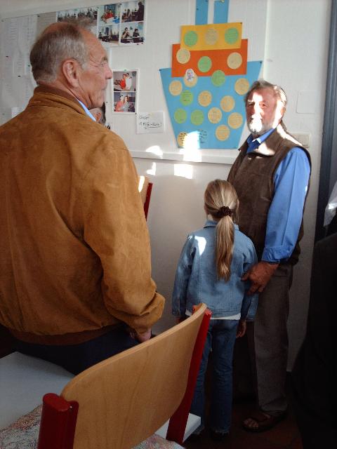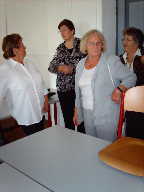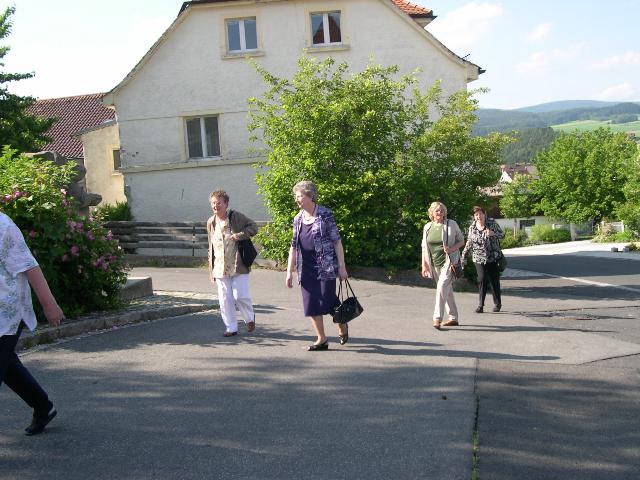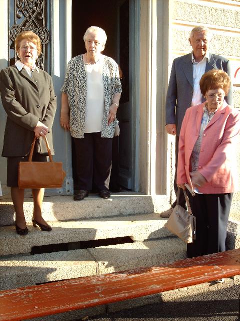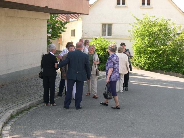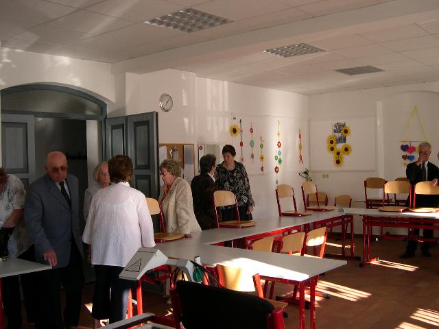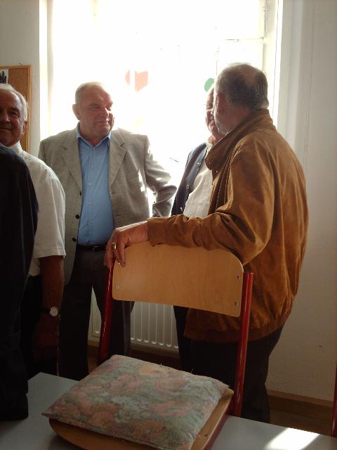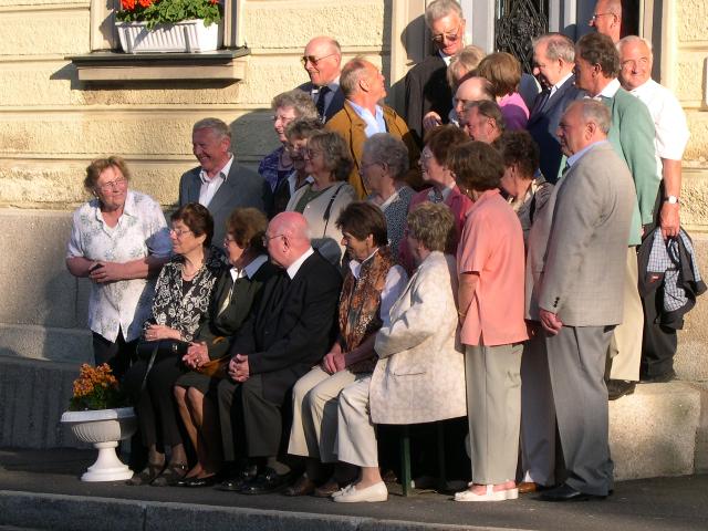 Anschließend stellte sich der Schülerjahrgang an der Alten Schule zu einem gemeinsamen Erinnerungsfoto. Gerne nahm man dass Angebot von Rita Schreiber an, durch die ehemaligen Klassenzimmer zu führen. Hier wurden Erinnerungen an die gemeinsame Schulzeit wieder wach. Dann ging es voller Vorfreude weiter ins Gasthaus „Rotes Roß". Auch der Fußweg dorthin weckte bei vielen Erinnerungen an den beschwerlichen Schulweg von einst.