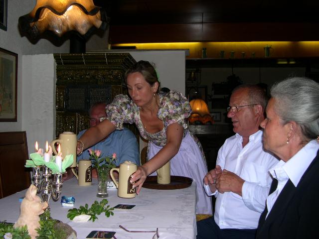 Im behaglichen Gastzimmer der Wirtsfamilie Purucker fühlten sich alle Gäste sehr wohl. Irmi Wellenhöfer, die das Klassentreffen zusammen mit Marianne Müller und Inge Döppl organisiert hatte, begrüßte die ehemaligen Schulkameraden. Nach dem gemeinsamen Abendessen stand ausgiebiges Schwätzen auf dem Stundenplan. Dabei wurden vergilbte Fotos angeschaut und bis zu vorgerückter Stunde schwelgte man in Erinnerungen an eine gemeinsame Schulzeit, die zwar schon viele Jahre zurückliegt aber die Erinnerung daran noch hell wach ist.