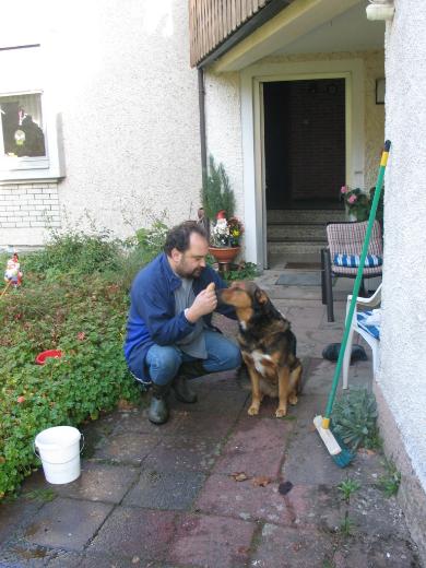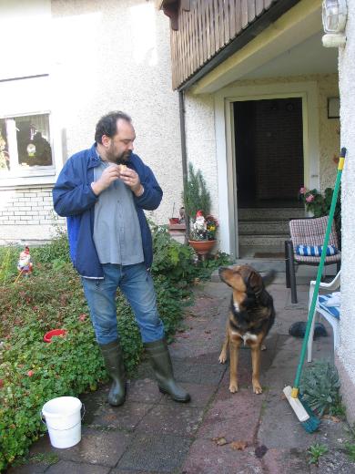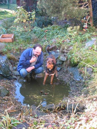 | | Auch der üppige Bewuchs muß raus! | |  | | Justus (ohne Gummistiefel) |
