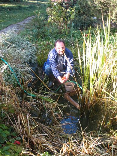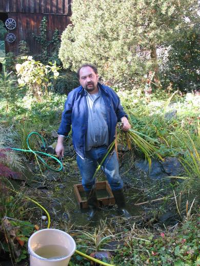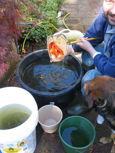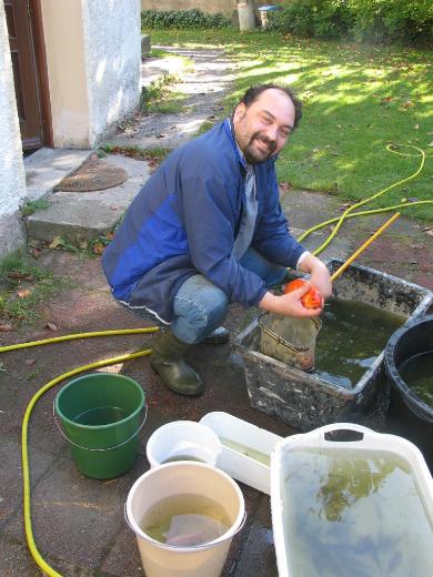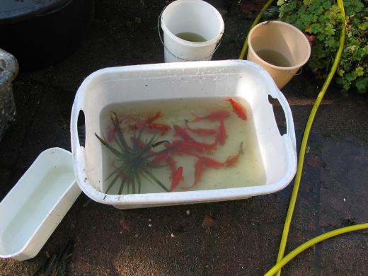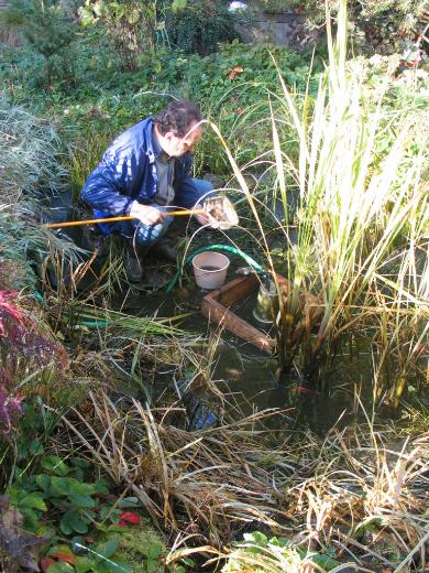 Am Samstag, 15. Oktober 2005 haben wir den Gartenteich abgefischt. Die Bewohner wurden in ihr Winterquartier umgesetzt.