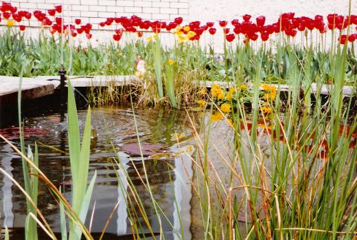 Die Fische sind eingesetzt und der Springbrunnen plätschert