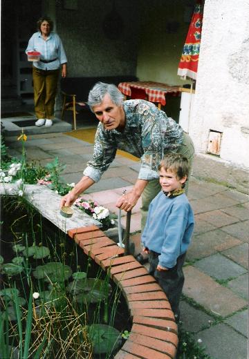 Ludwig und Benny Bühringer beim Fischefüttern